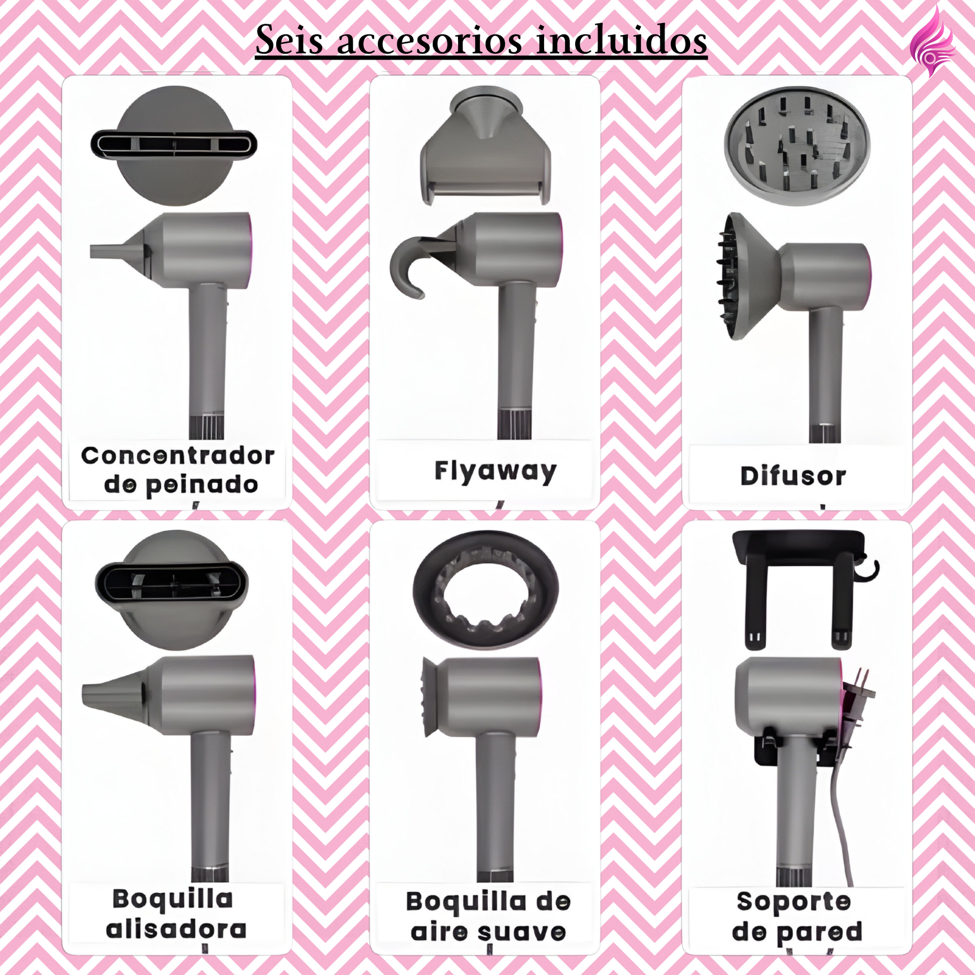 - 💇♀️ Incluye 6 accesorios profesionales y funciones de aire caliente y frío, ideal para todo tipo de cabello.