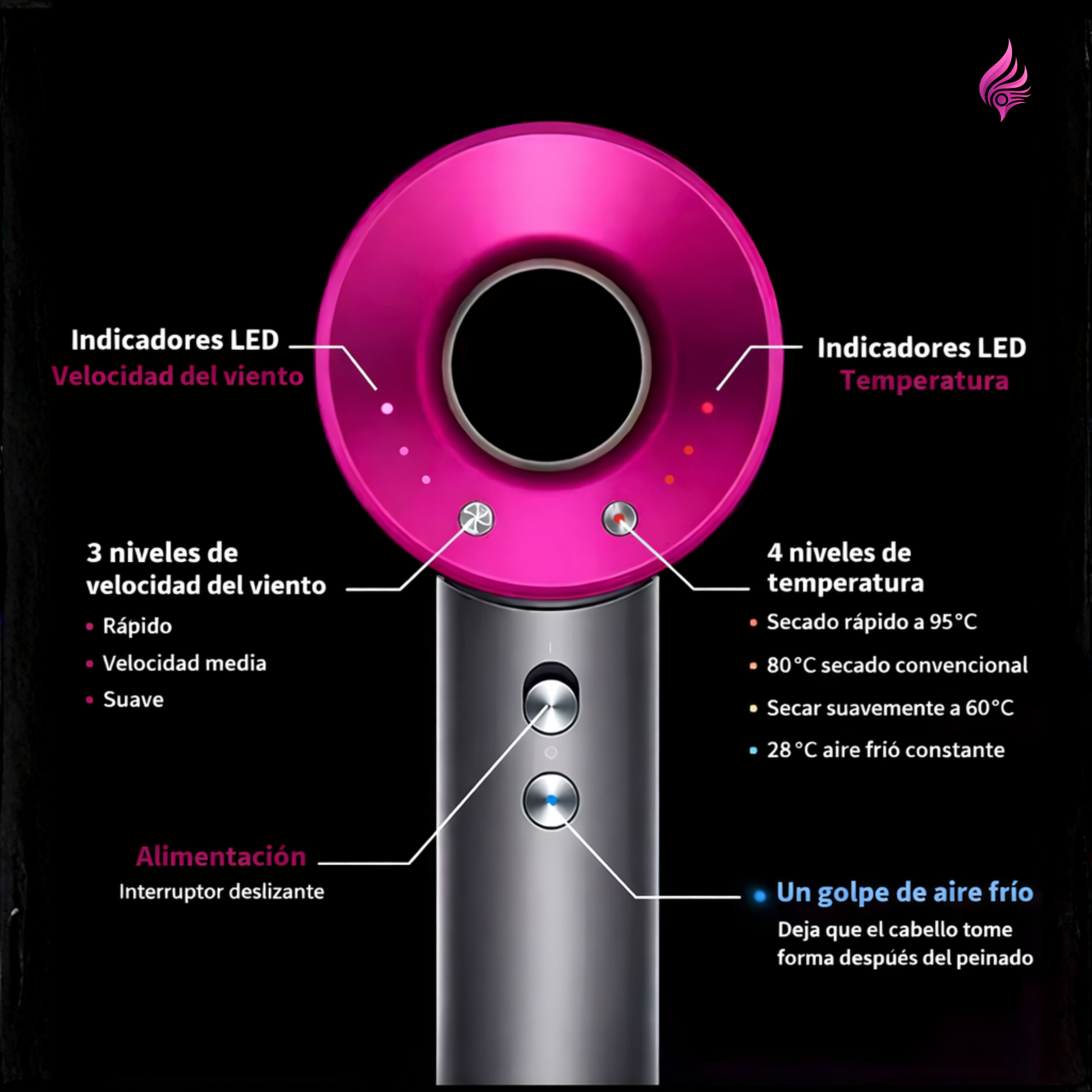 - 💨 Tecnología iónica avanzada que reduce el frizz, protege del calor y potencia un brillo natural.